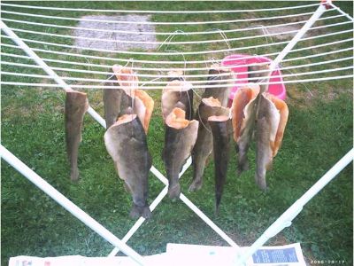 Einen Wäscheständer benötige ich um die Forellen vor dem räuchern mindestens 12 Stunden zutrocknen. Fürs Foto habe ich den Ständer aus dem Keller geholt.
